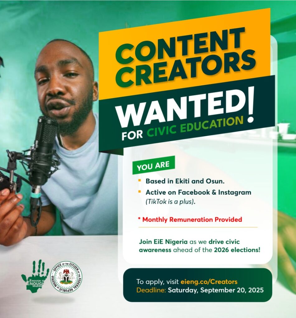 EiE Nigeria is recruiting content creators in Ekiti and Osun States to drive civic awareness ahead of the 2026 elections.